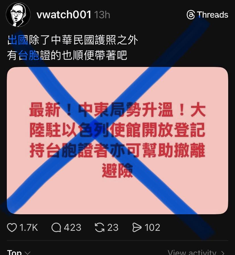 最近看到朋友貼了一張圖,說中東局勢升溫,中國人大使館開放登記撤離,持台胞證的人也可以協助離開。